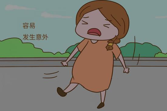 如果孕妈已经进入孕晚期,肚子明显高度隆起,身体就会变得比较笨重。由于腹部的遮挡,很多孕妈基本上是看不到自己脚尖的,可以说走路很不方便。更何况晚上光线比较昏暗,可能会看不见脚下的石头、坑洼或者其他障碍,所以很容易会跌倒,发生意外。