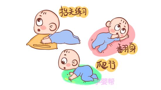宝宝的大运动:2个月抬头、4个月翻身、6个月独坐、8个月爬行、10个月独站、12个月独走;