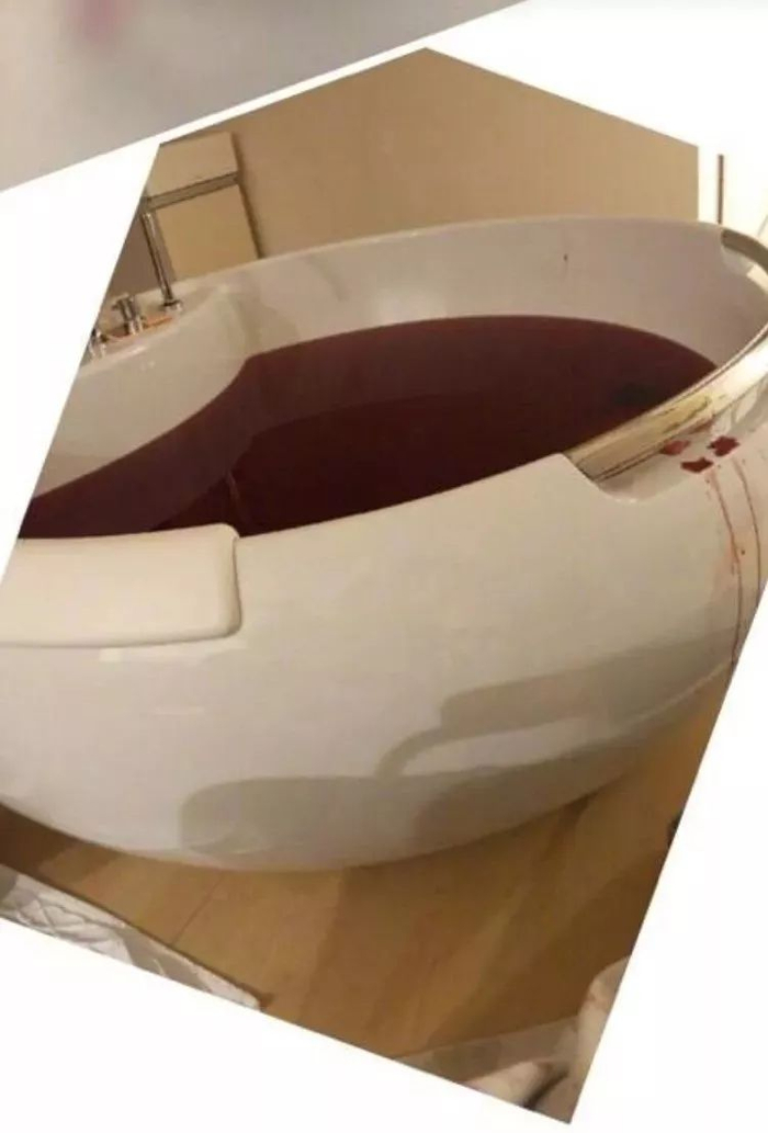 所以谢依霖po出的分娩池看着吓人,但其实是一大池子水被一点血染红的结果啦。水中分娩的出血量并没有比产床上分娩要多哦。上一张外国人水中分娩的图,给你洗洗眼睛: