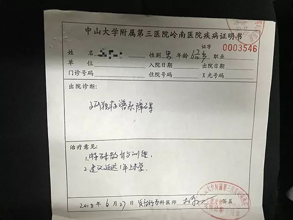 当年6月27日,黎中原跑了趟医院,开了张疾病证明书,治疗意见上写着: