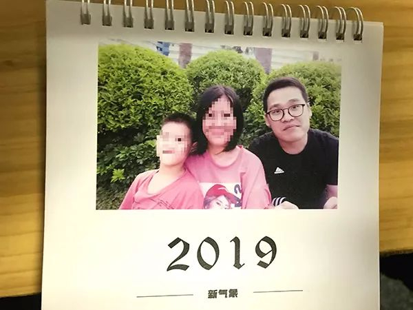 黎中原的桌上放着一本2019年的台历,每一页都印有一家三口的合影。