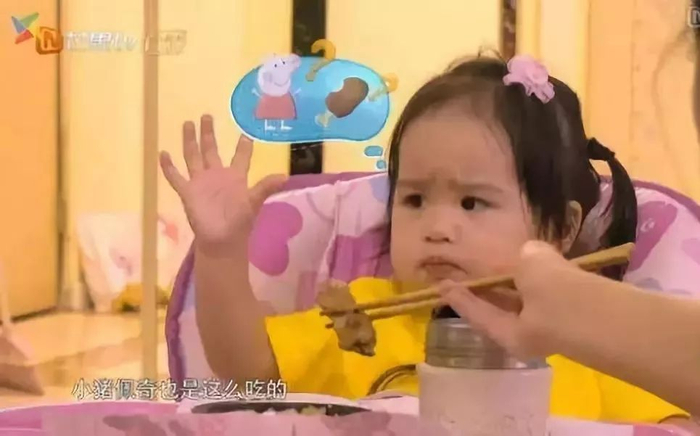 在一个综艺节目中,包文婧想尽办法想让饺子吃饭,可是饺子怎么也不肯。张歆艺无意间说了一句‘小猪佩奇也是这么吃的’,饺子立刻吃了起来。