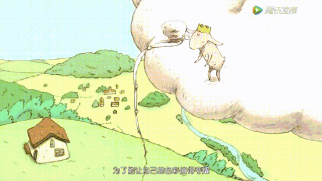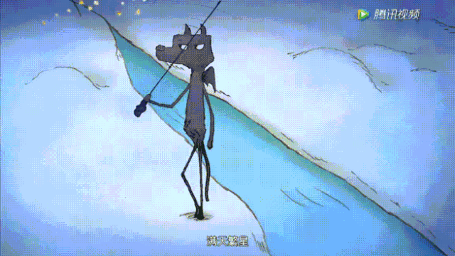 短片的结尾,羊妈妈望向夜空,之前偷偷把自己毛给小羊编绳子的狼守卫,将羊毛绳化成了一道耀眼的星光,照亮着云端的小羊和地面的羊妈妈。
