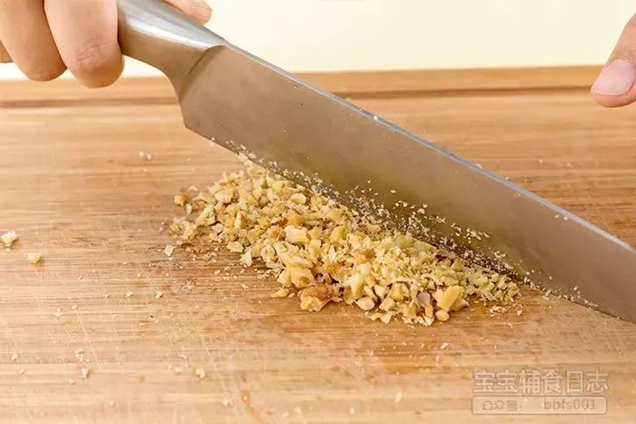 4。在蒸的过程中,我们可以准备其他辅料:将坚果切成碎末备用;