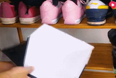 把切割下来的鞋盒放到鞋架上,上下能各放一双鞋,瞬间增大利用空间,鞋架放满了的赶快试试!