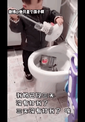 让他不要动水池子里的碗,他非不听,趁你不注意把锅碗瓢盆全扔进马桶里,还用马桶刷洗!